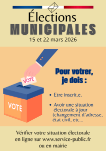 Pour pouvoir voter aux prochaines élections municipales, des 15 et 22 mars 2026, vous devez être inscrit-e sur la liste…