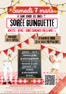 L’Amicale Laïque de Saint-Benoît-des-Ondes organise une soirée Guinguette. Tous les bénéfices serviront à financer des projets de l’école publique Du…