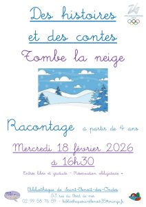 La bibliothèque organise un atelier racontage sur le thème “des histoires et des contes” le mercredi 18 février 2026 à…