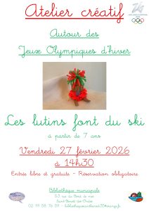 La bibliothèque organise un atelier créatif autour des Jeux Olympiques d’hiver – “Les lutins font du ski” – le vendredi…