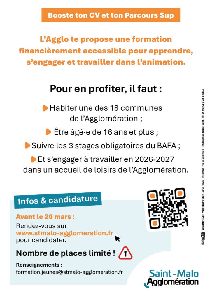 Pour toute demande de renseignements, vous pouvez nous contacter à formation.jeunes@stmalo-agglomeration.fr